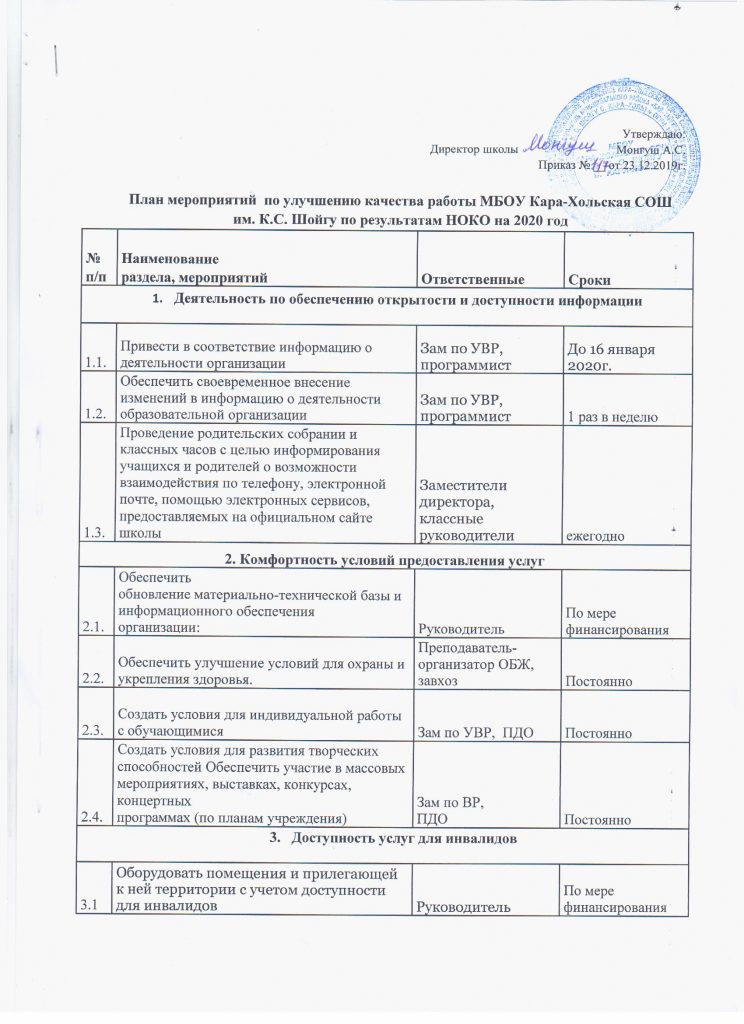 ПЛАН РАБОТЫ ПО РЕЗУЛЬТАТАМ ПРОВЕДЕНИЯ НОКО