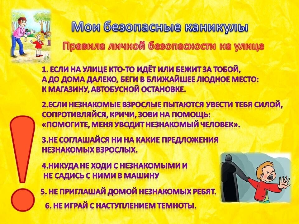 Когда бы ни проходили каникулы, если общие рекомендации, как позаботиться о своей безопасности в разных местах, где вы можете находиться. Самые значимые из них — улица, дорога и дом, когда рядом нет взрослых. Рассмотрим каждое.