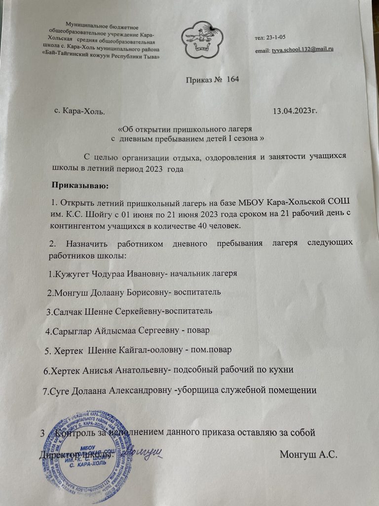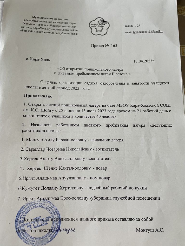 МБОУ Кара-Хольская СОШ им К.С.Шойгу с. Кара-Холь